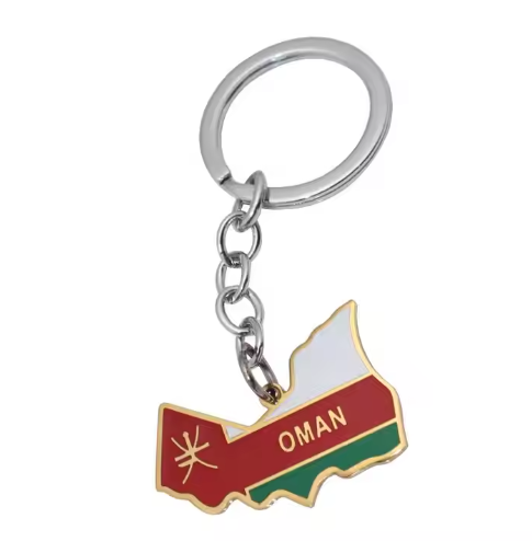 عبّر عن حبك لعُمان أو احمل قطعة مميزة من التراث العُماني معك دائمًا مع سلسلة المفاتيح المصممة على شكل خريطة عُمان والمزينة بعلم السلطنة.