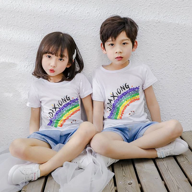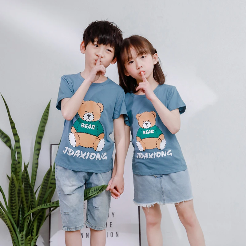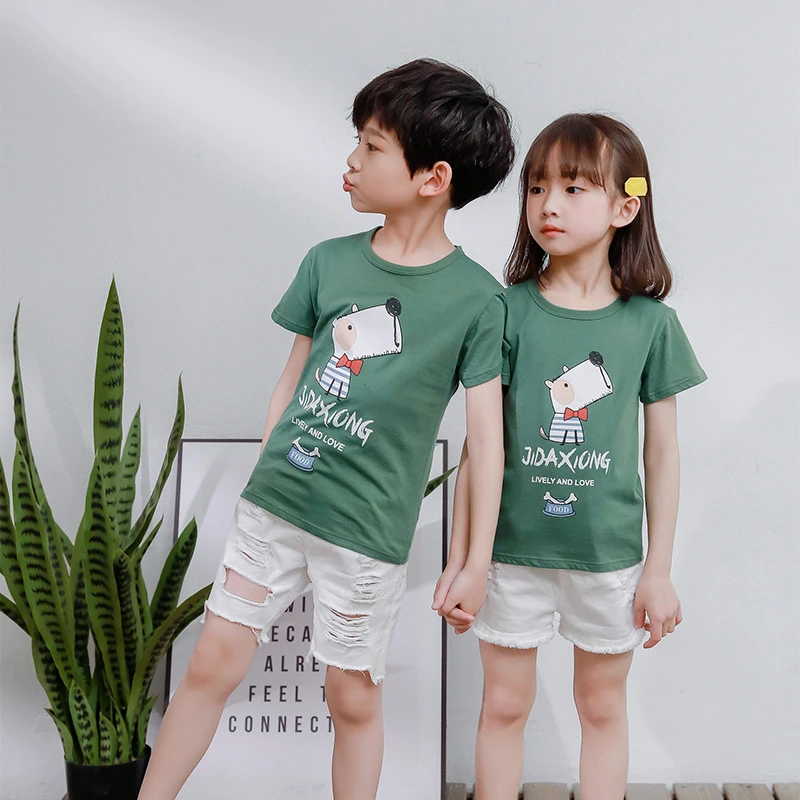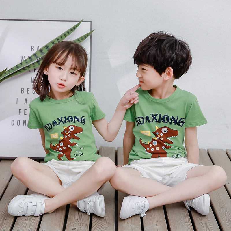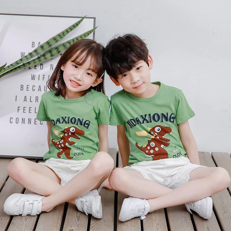 الربيع والصيف ، النسخة الكورية القصيرة للأطفال من شينجيانغ القطن من T -shirts كاريكاتير غير رسمي للأطفال الصغار الصغير والصغير